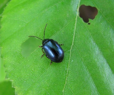 青い光沢のあるハムシ。